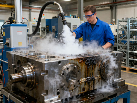 在工业清洁领域,一场静悄悄的革命正在发生。它没有高压水枪的轰鸣,没有化学溶剂的刺鼻气味,取而代之的是一股冰冷的“烟雾”和工件焕然一新的光泽。这就是干冰清洗技术——一种高效、环保且极...